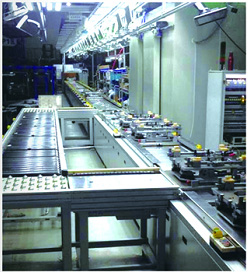 線體通過減速電機帶動倍速鏈條旋轉(zhuǎn)并移動,通過倍速鏈條結(jié)果實現(xiàn)工裝板的倍速移動,線體結(jié)構(gòu)比較靈活,可以是單層、雙層或者環(huán)型結(jié)構(gòu),線體通過PLC控制,可實現(xiàn)與客戶MES系統(tǒng)對接。