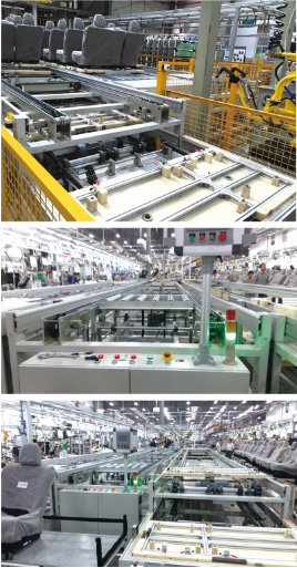 發(fā)運(yùn)線,主要接受來(lái)自立體倉(cāng)庫(kù)或產(chǎn)線的成套座椅,通過(guò)掃碼或RFID識(shí)別座椅類別,并根據(jù)客戶訂單順序?qū)⒆闻帕校缓笸ㄟ^(guò)倒排序線,將座椅輸送至發(fā)運(yùn)卡車,發(fā)運(yùn)卡車將座椅運(yùn)輸至客戶現(xiàn)場(chǎng)。